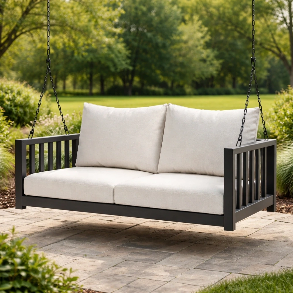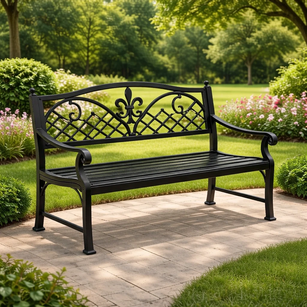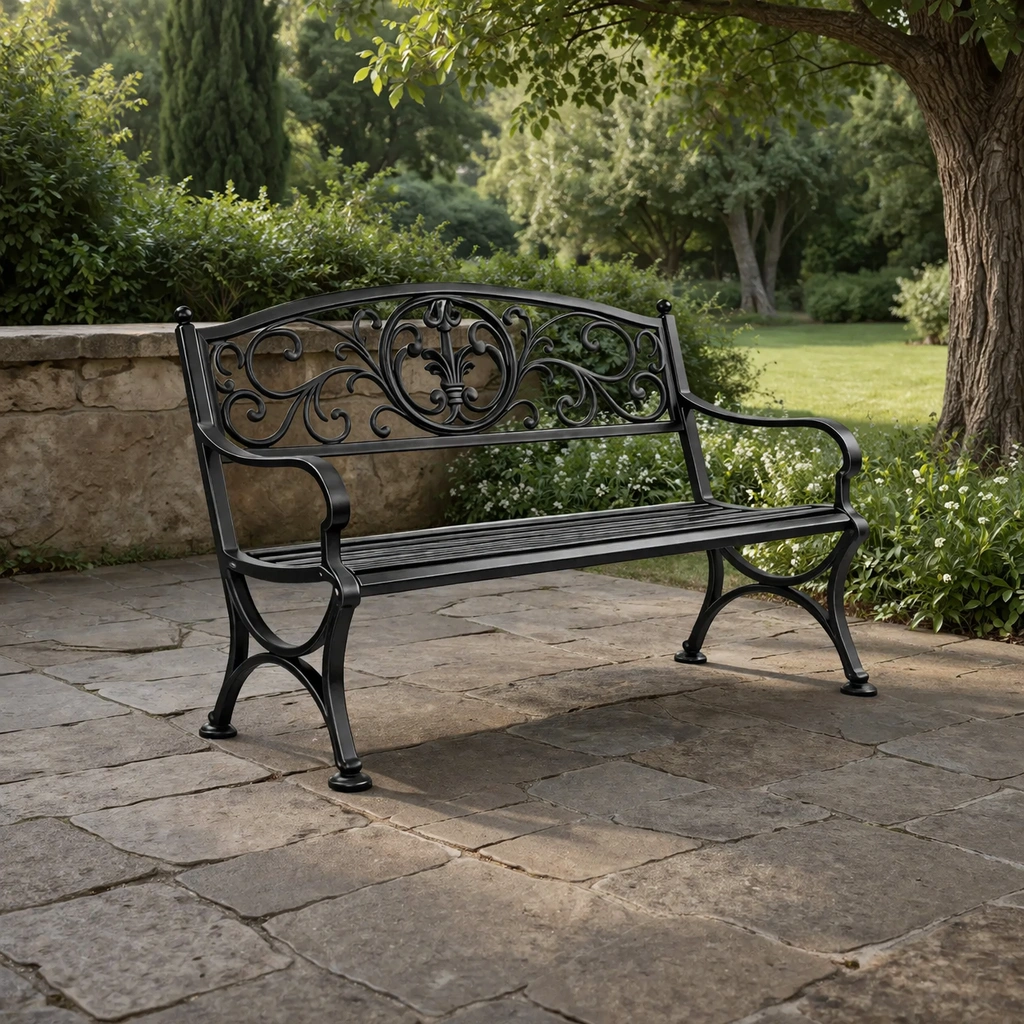 Banc rectangulaire en métal et plastique ABS noir et blanc 200 x 40 x 45 cm