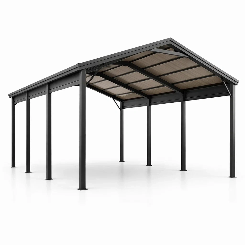 Abri voiture en métal gris