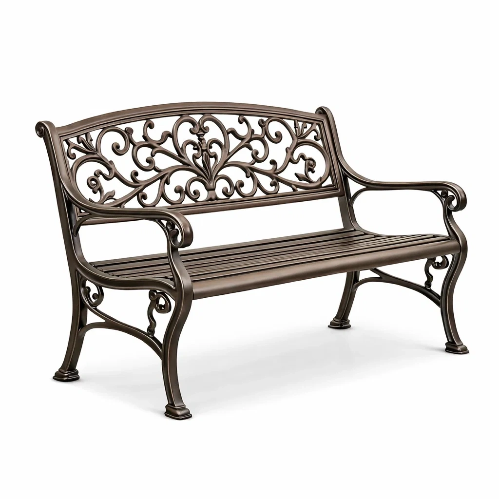 Ce banc de jardin est fabriqué en aluminium moulé offrant une bonne résistance à la rouille. Sa finition assure une durabilité accrue en extérieur.